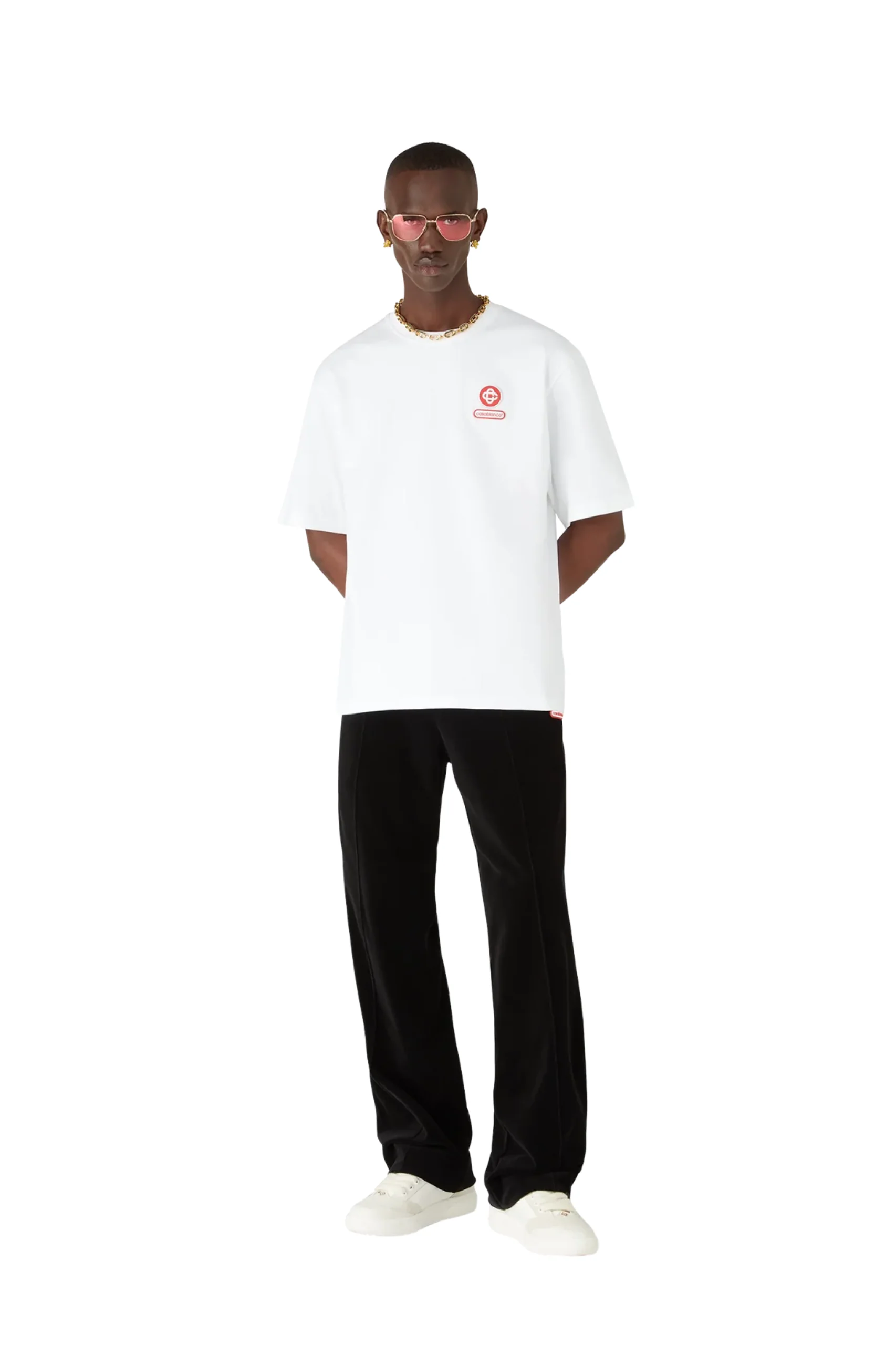 +The logo patch short-sleeve t-shirt is crafted from organic cotton fabric, featuring the house’s signature interlocking CC logo. Completed with a Japanese Casablanca logo patch at the back and a classic crew neck.
