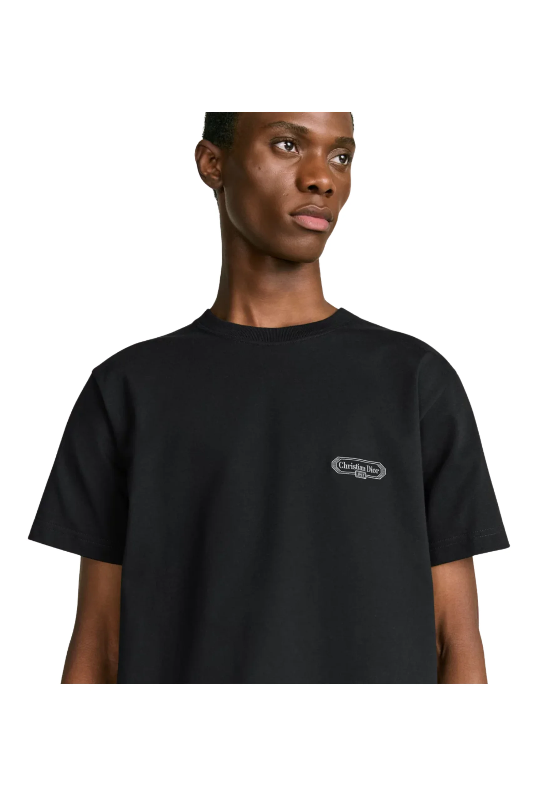 The T-shirt showcases the CD Box signature celebrating the House’s couture spirit. Crafted in black cotton jersey, it features a ribbed crew neck and can be paired with wide-leg jeans to complete a modern style.
