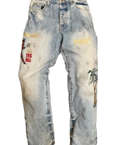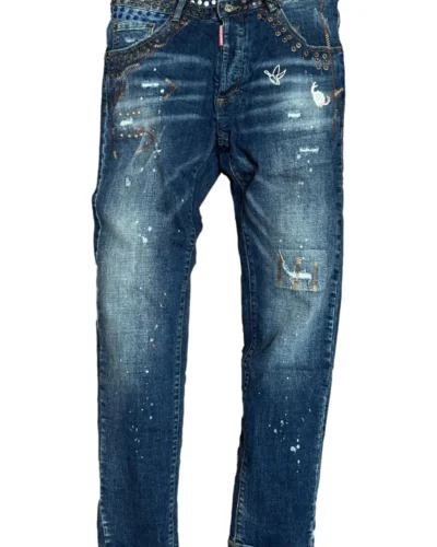 These Dsquared2 jeans bring strong street energy with hand applied bleach effects and bold graffiti style artwork. Each pair has a unique pattern that adds personality to any outfit. Perfect for those who want a striking and artistic look.