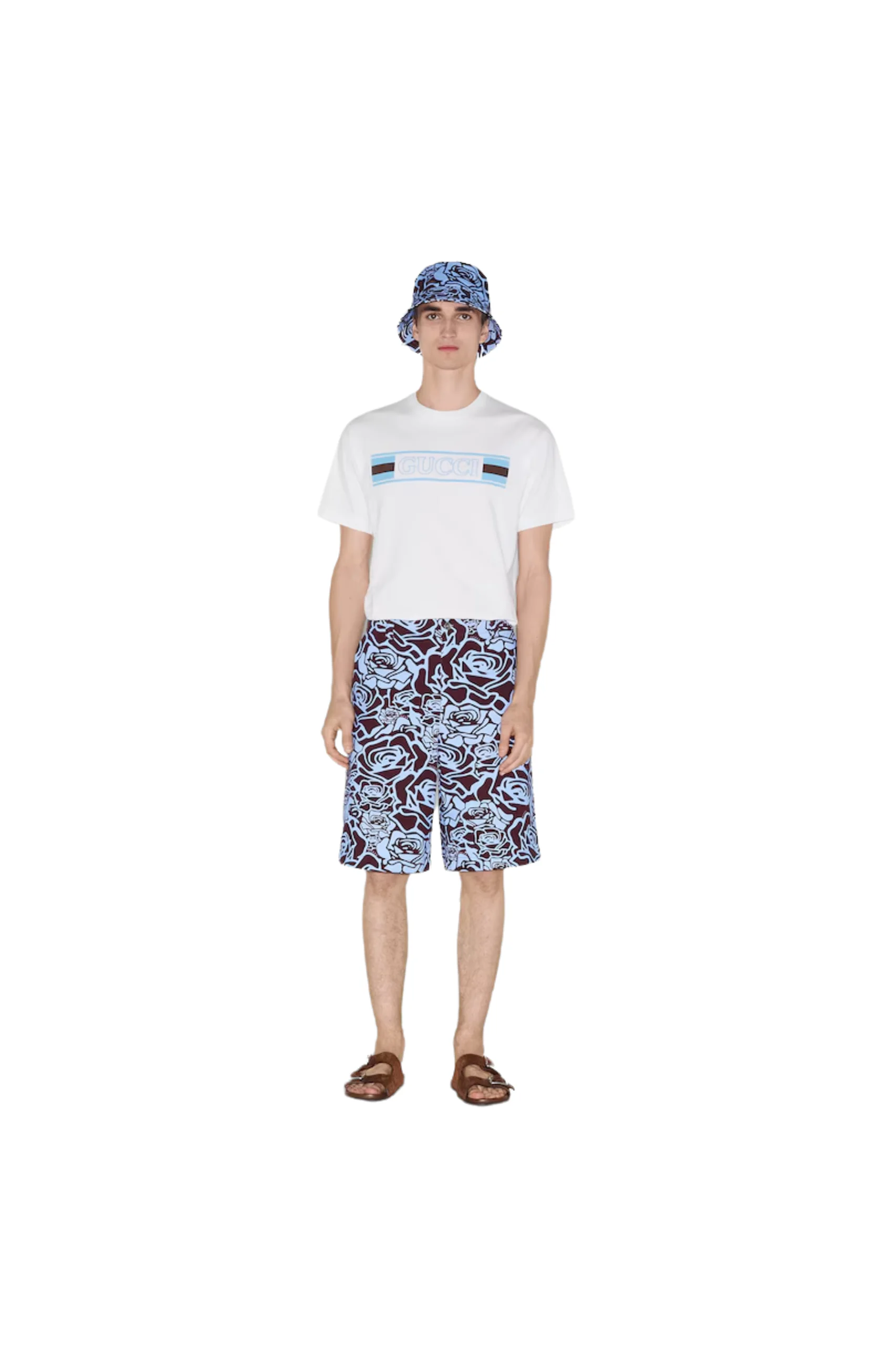 Gucci’s House codes continue to evolve for the new season across jersey pieces. Crafted from a cotton jersey, this regular fit T-shirt is defined by a Gucci Web banner print.