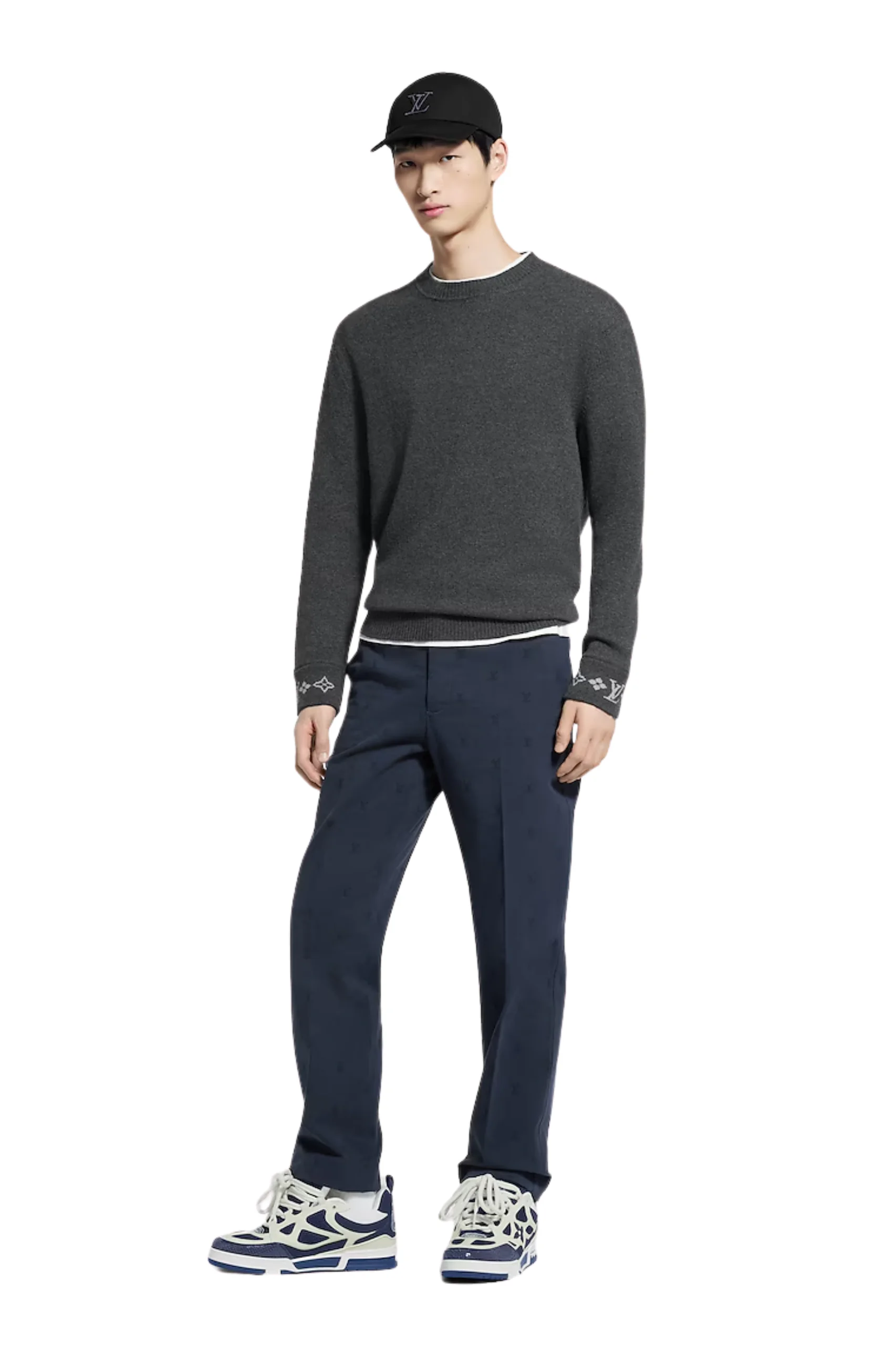 This timeless crewneck is crafted from pure cashmere for an exceptionally soft finish. Contrasting tonal Monogram elements are incorporated into the knit of the ribbed cuffs, creating a discreet signature accent. With its smart gray tones, this fine-knit pullover is a wardrobe essential that can complete any look.