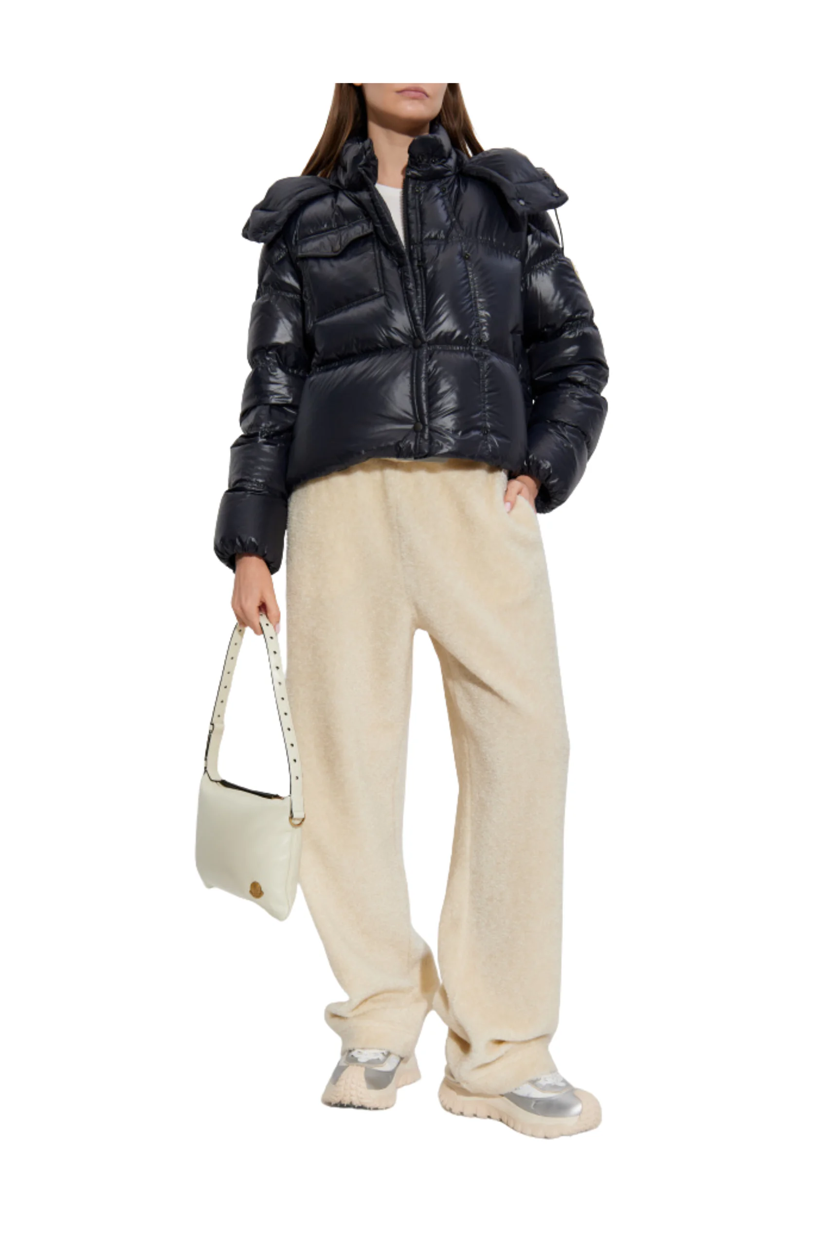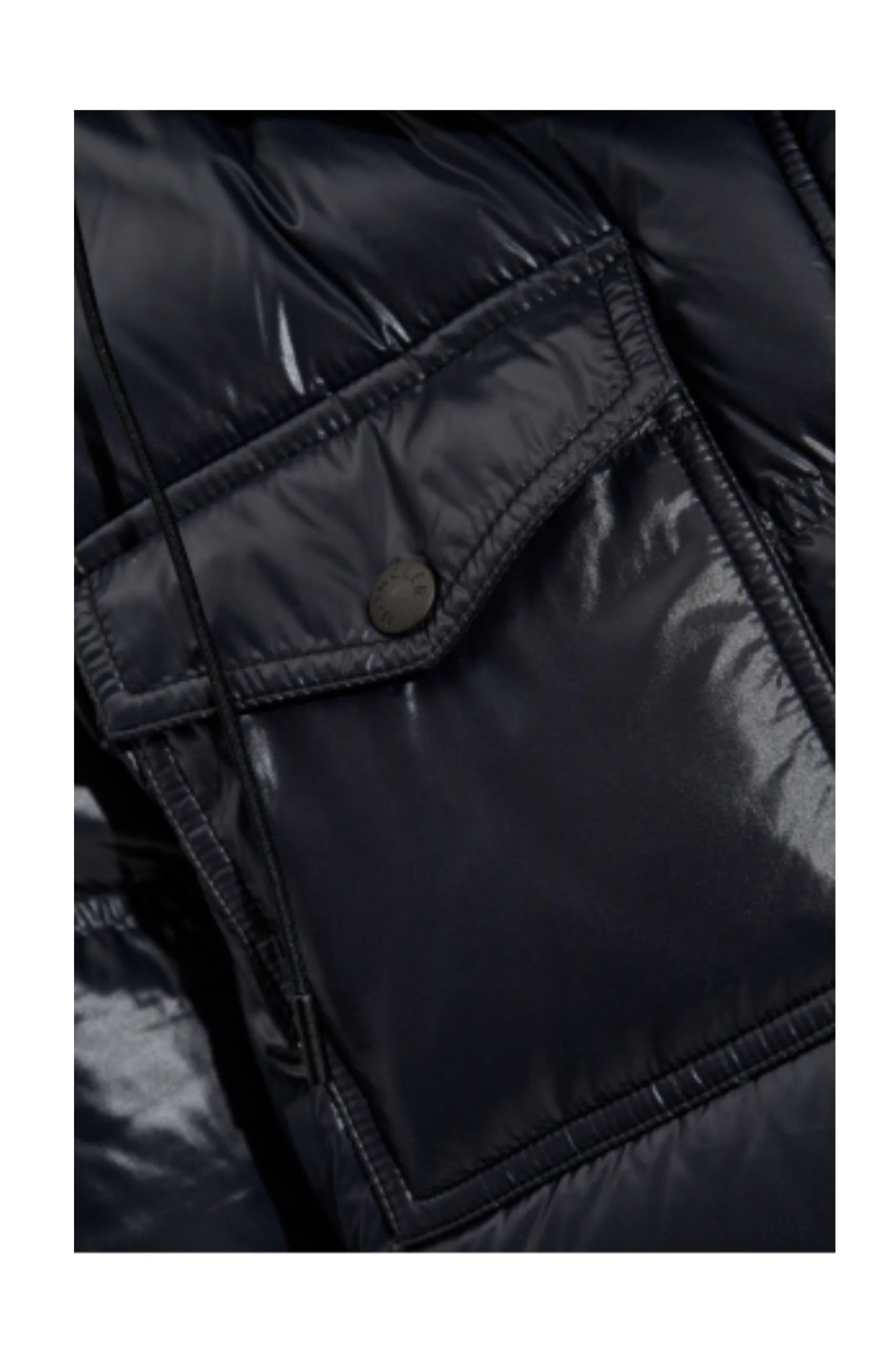 The jacket features generous horizontal quilting that highlights its voluminous structure with its high-quality down and feather fill. Comfort is enhanced by a large, adjustable hood with a high closure and a spacious patch chest pocket with a flap, which serves as a subtle, functional detail. The Erea model is the epitome of stylish cold-weather protection and reflects the heritage of the Moncler brand.