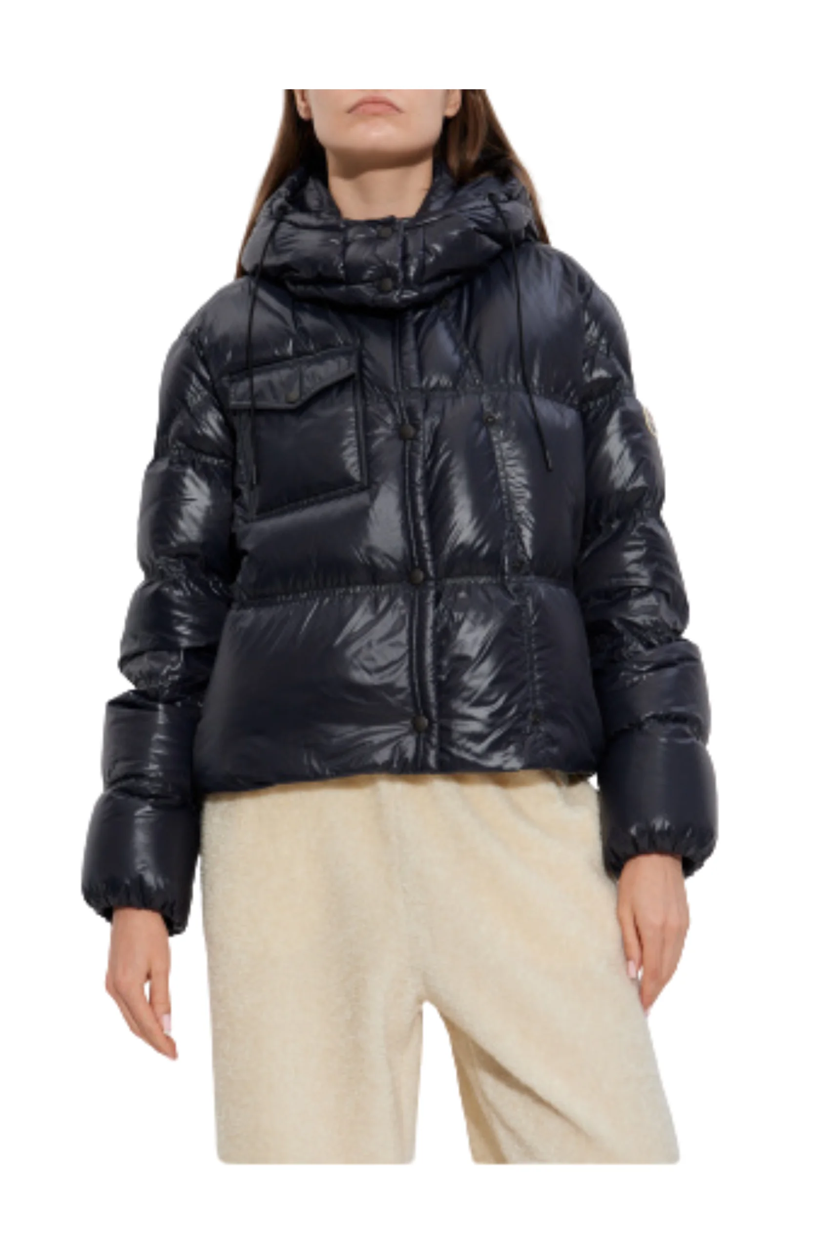 Moncler’s Erea down jacket is a sophisticated expression of modern elegance and functionality. Its signature short, boxy silhouette combines geometric precision with a sense of freedom of movement, offering a slightly oversized shape and impressively heavily quilted sleeves. The glossy outer fabric, crafted from an advanced technical fabric, effectively protects against the elements while imparting a unique lacquered surface effect.