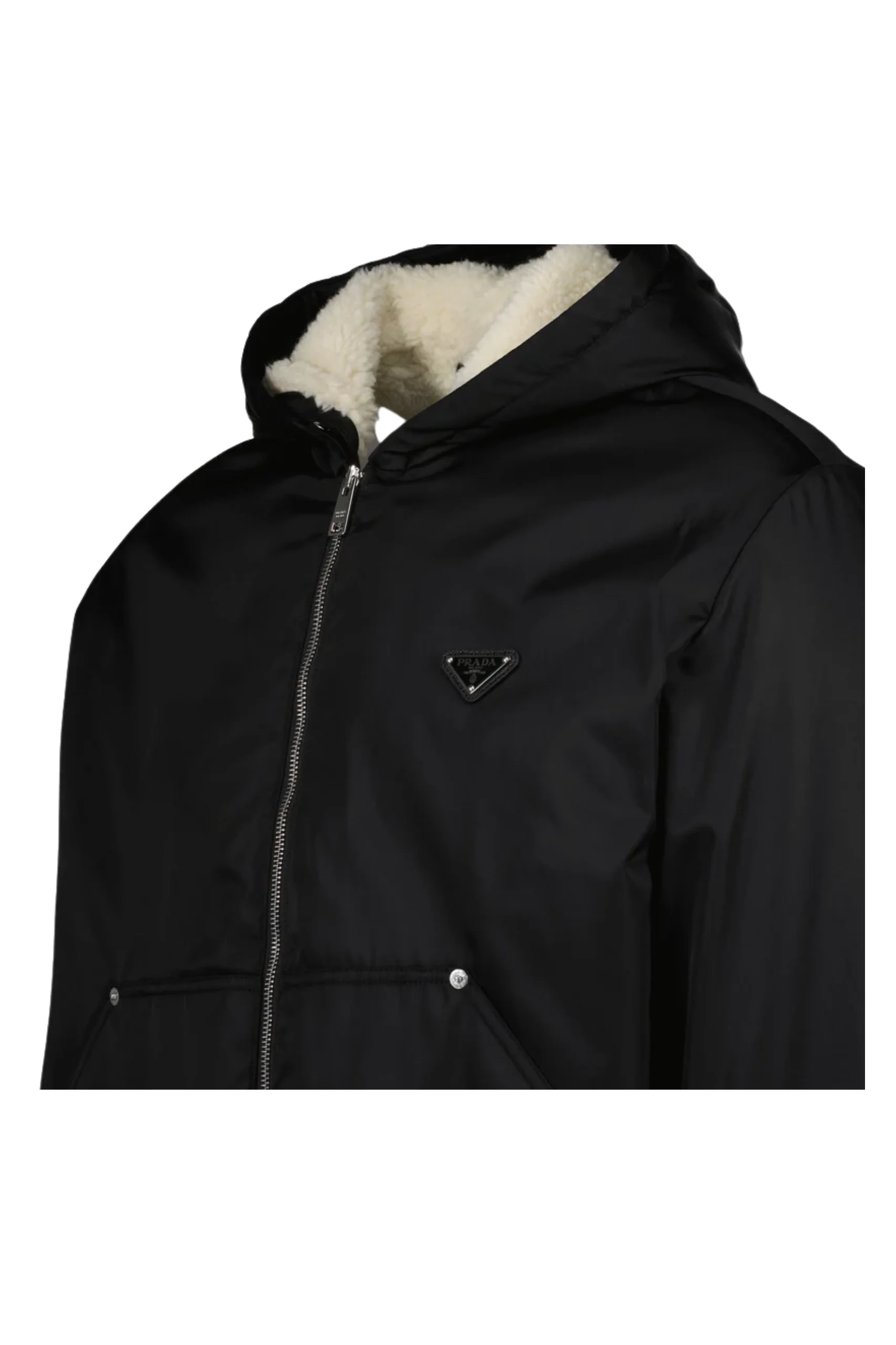 Experience the perfect blend of style, comfort, and environmental consciousness with the Prada Black Re-Nylon Fur-lined Jacket, an essential piece for the discerning individual.