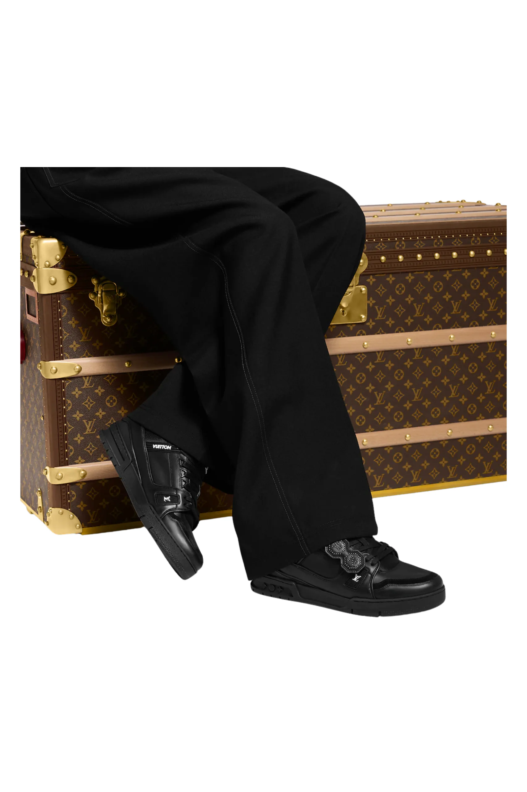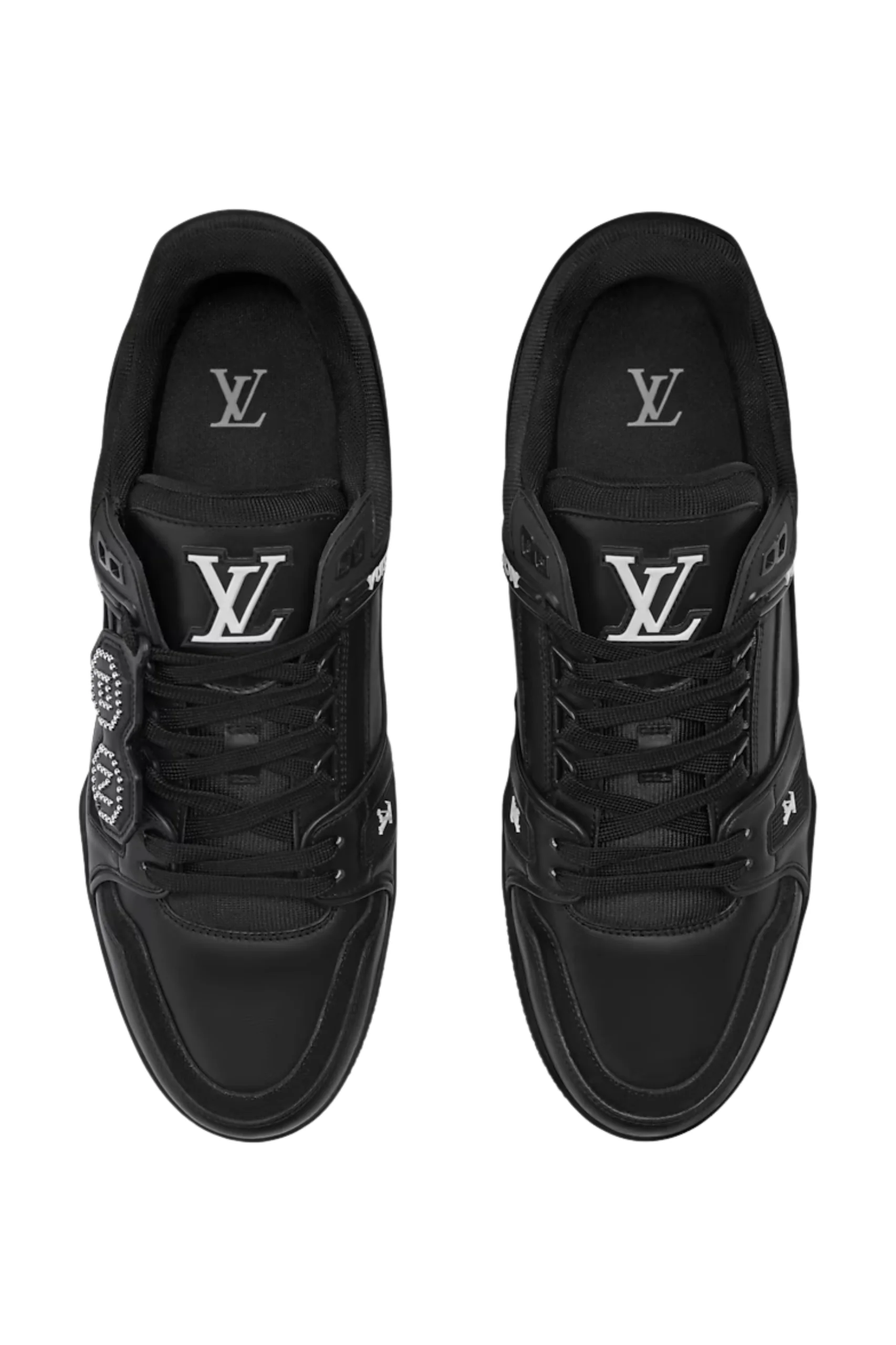 This exclusive version of the LV Trainer sneaker celebrates the collaboration between Pharrell Williams and Nigo for the Men’s Fall/Winter 2025 fashion show. While the upper, crafted from supple calfskin, features a pendant bearing the designers‘ initials in the form of studs, their signatures are embossed on the heel. The striking design is finished with Vuitton signatures and LV initials in rubber.