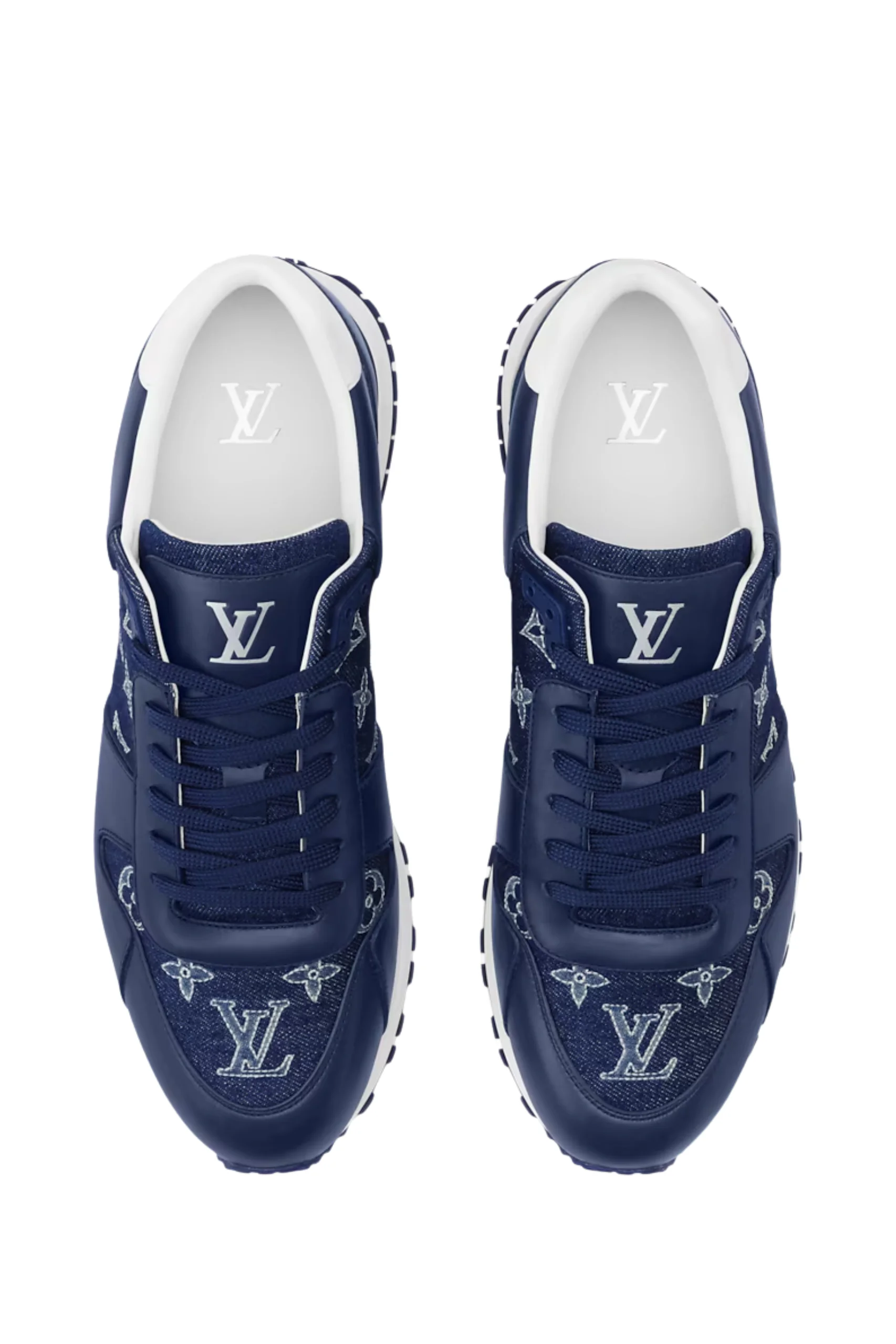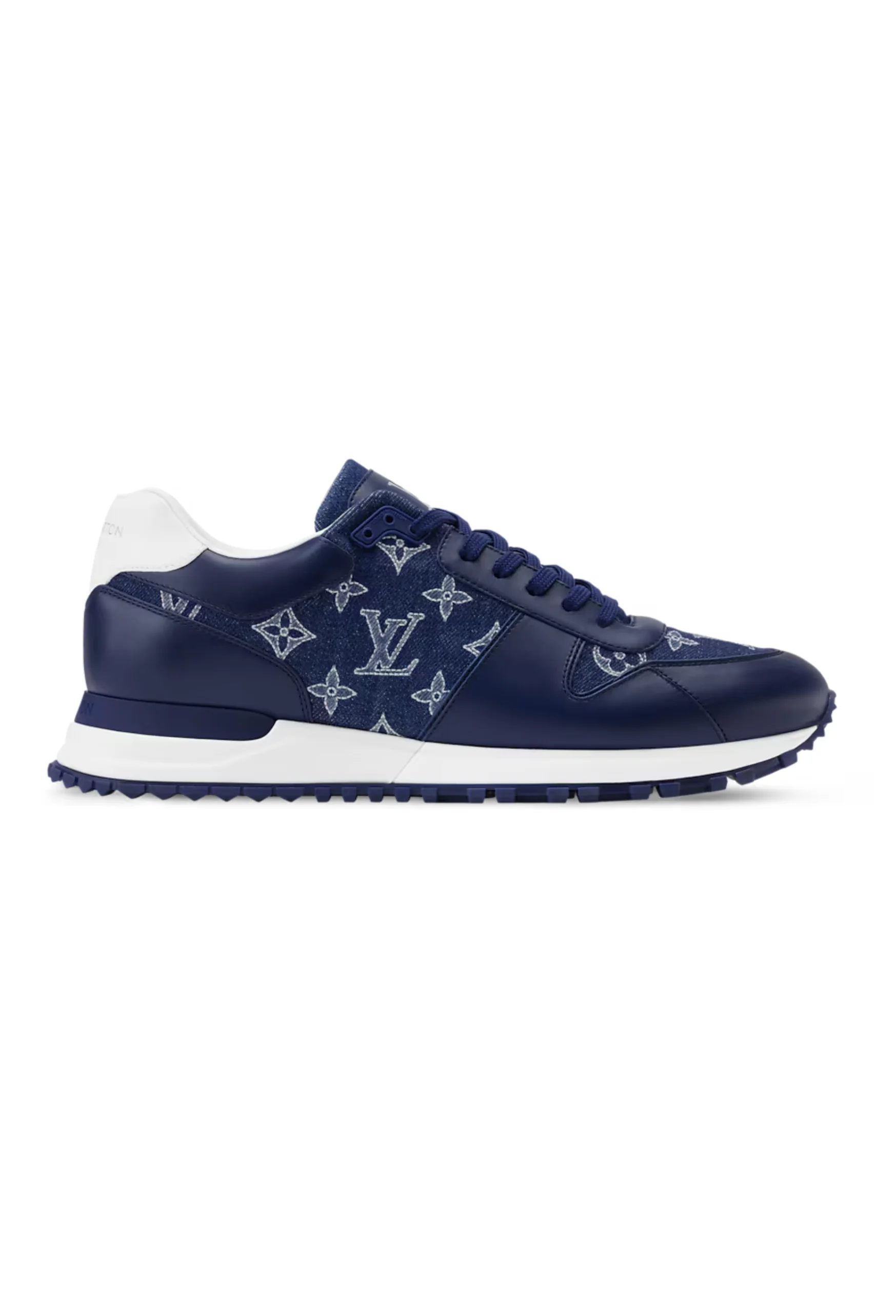 In this reimagined version, the Run Away sneaker features a sophisticated combination of smooth calfskin and denim with an embroidered monogram motif. This classic from the Louis Vuitton men’s footwear collection boasts a technical rubber outsole with handcrafted leather trim. LV initials accentuate the tongue, while a Louis Vuitton Paris signature adorns the heel.