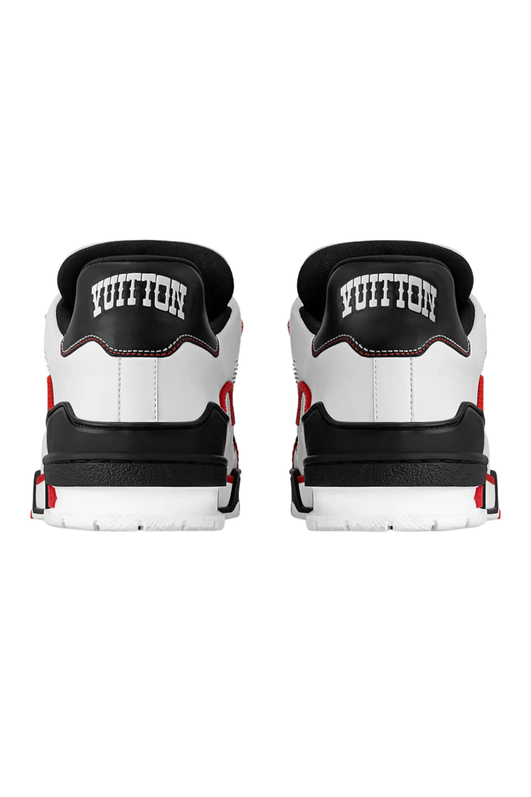 The LV Trainer sneaker is reinterpreted in grained calf leather with colorful accents. This iconic model, designed by Virgil Abloh, was inspired by vintage basketball sneakers and has an elaborately constructed upper. Key details are the Louis Vuitton script signature on the side and the Vuitton signature in a Western-style font at the back.