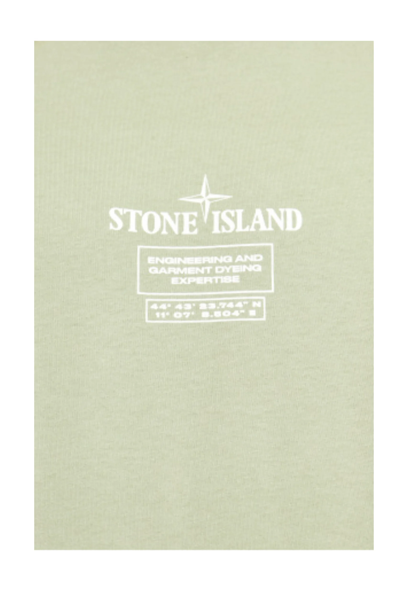 The classic, regular fit with short sleeves and a crew neckline perfectly accentuates the relaxed, slightly oversized silhouette, ensuring a modern yet timeless appearance. A distinctive Stone Island logo and precise inscriptions with geographic coordinates adorn the chest, while a large, contrasting emblem on the back stands out – a mark of authenticity and the mastery of Italian design.