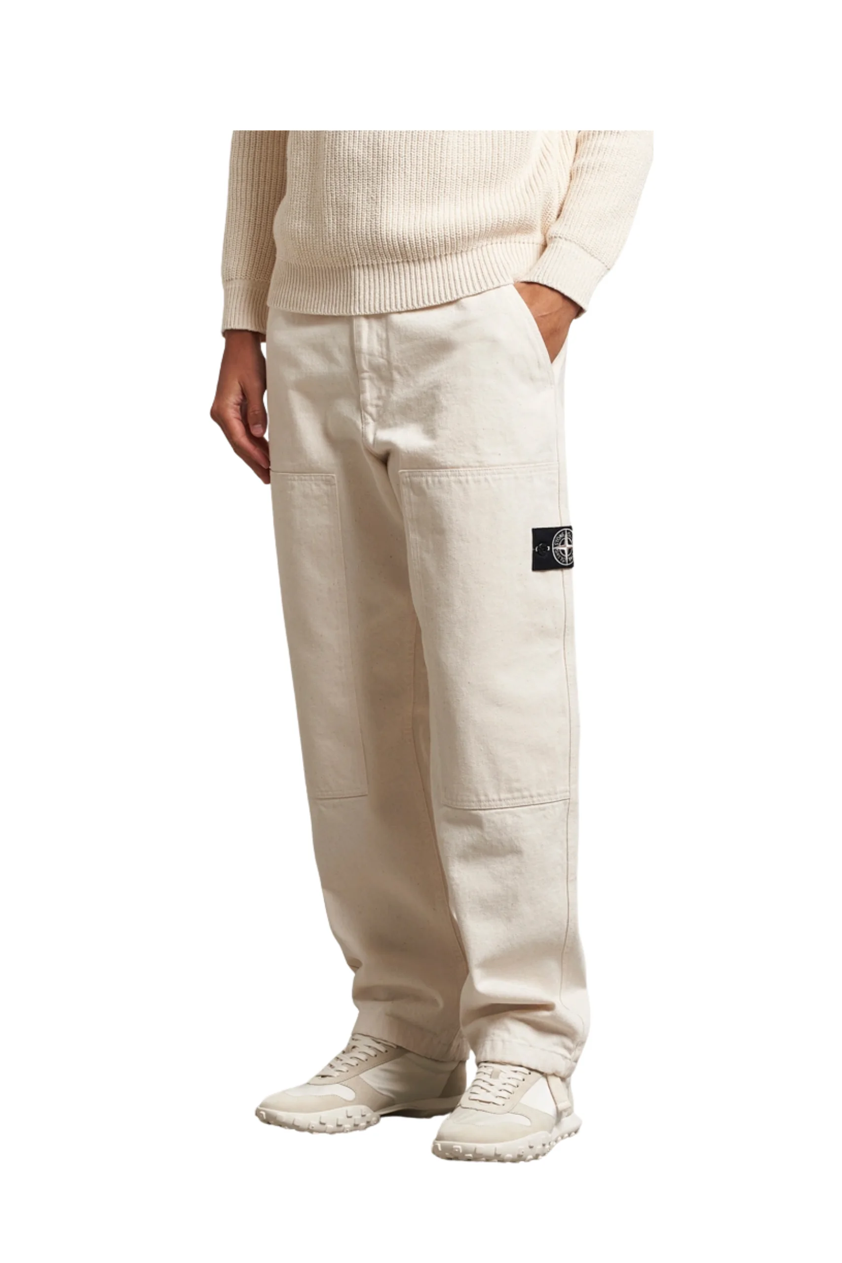 Stone Island RAW Washed Cotton Gabardine Trousers Ivory