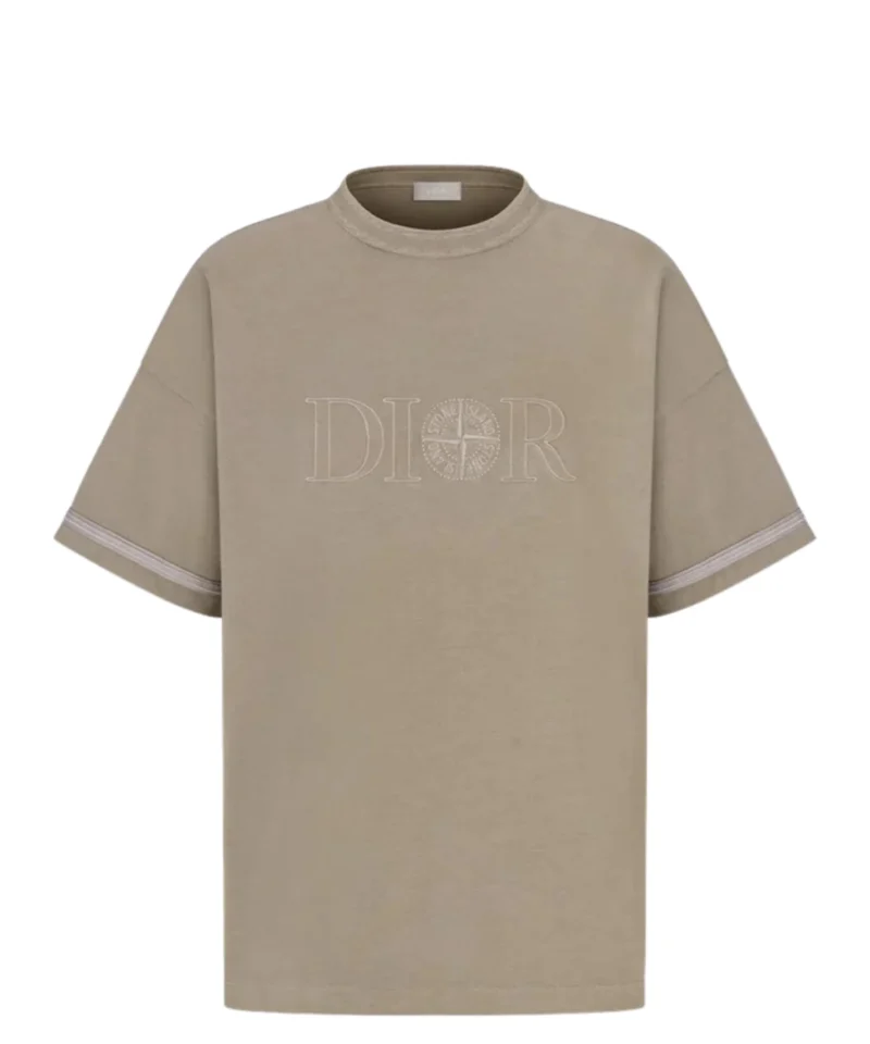 Dior And Stone Island T-Shirt, Oversized Fit Brown Cotton Jersey