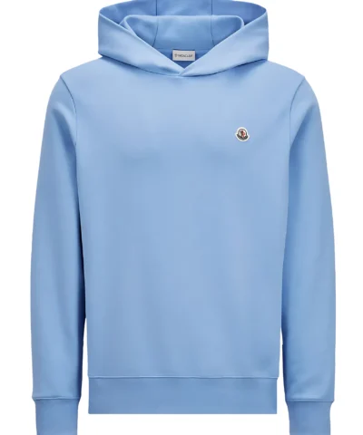 Moncler Logo Patch Cotton Hoodie Light Blue